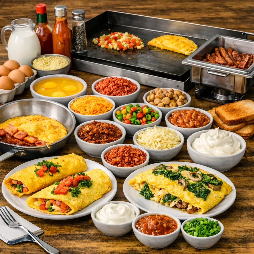 Our live omelet station brings a chef‑made, customizable breakfast experience to your event, with fresh ingredients cooked to order.