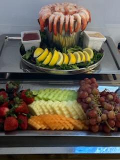 Ham, Turkey, Roast Beef, Assorted Cheeses, Pickles, Lettuce, Tomatoes, Olives, Assorted Breads, (add $2) Corned Beef, Tuna Salad, or Chicken Salad, Condiments, Choice of Potato Salad, Pasta Salad, or Cole Slaw